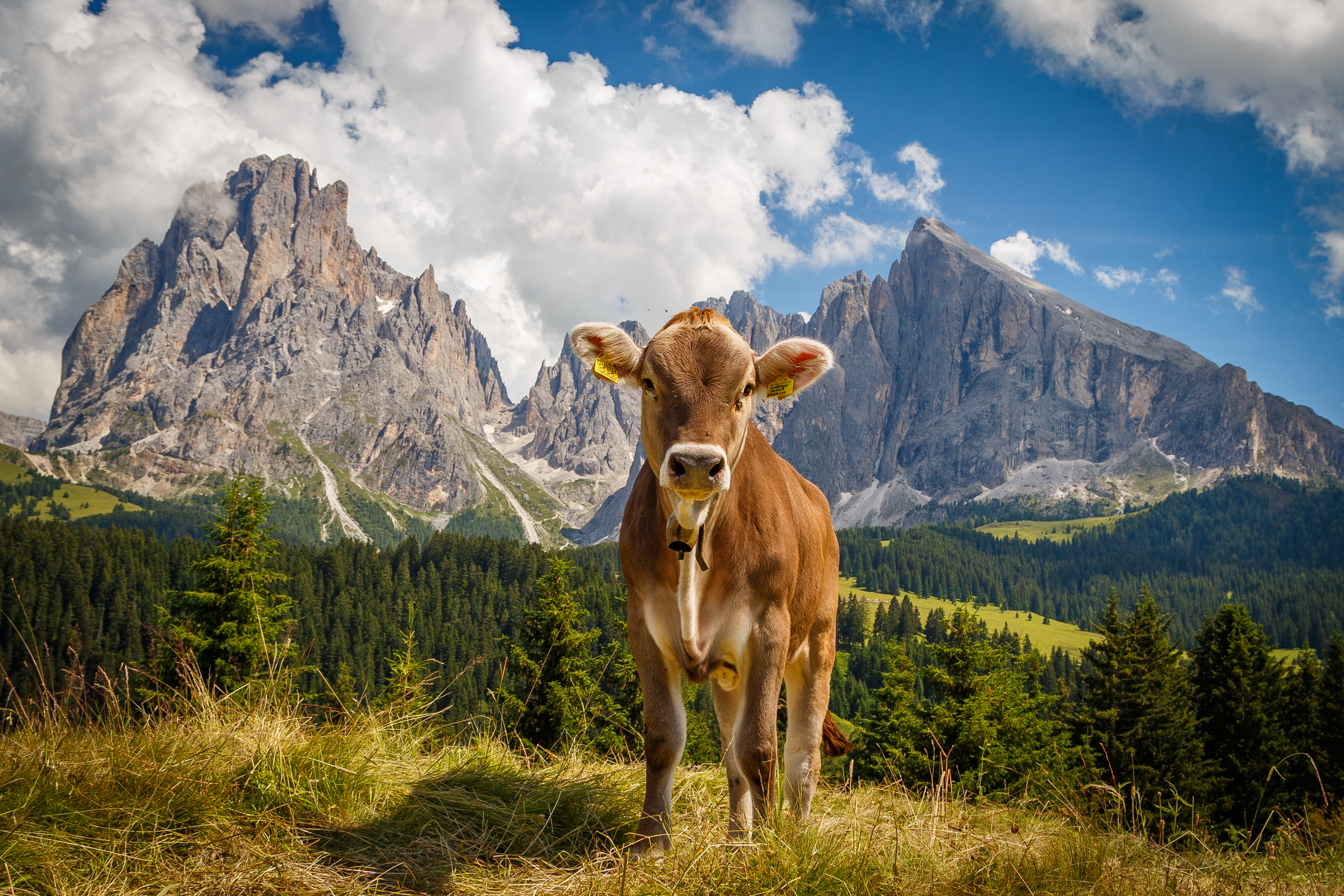Almen führen – immer begleitet von beeindruckenden Ausblicken auf die Bergwelt der Dolomiten.